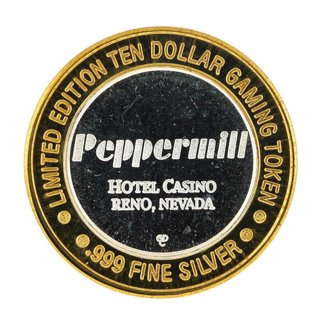One .999 Silver Peppermill Hotel Casino Reno, NV $10 Casino Limited Edition Gaming Token.