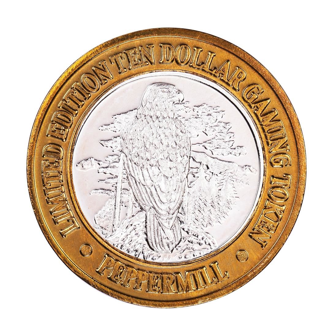 One .999 Silver Peppermill Hotel Casino Reno, NV $10 Casino Limited Edition Gaming Token.