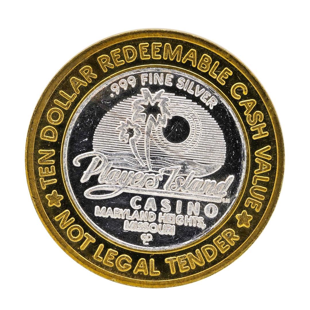 One .999 Silver Players Island Maryland Heights, MO $10 Limited Edition Casino Gaming Token.