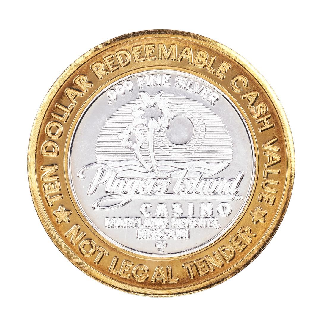One .999 Silver Players Island Maryland Heights, MO $10 Limited Edition Casino Gaming Token.