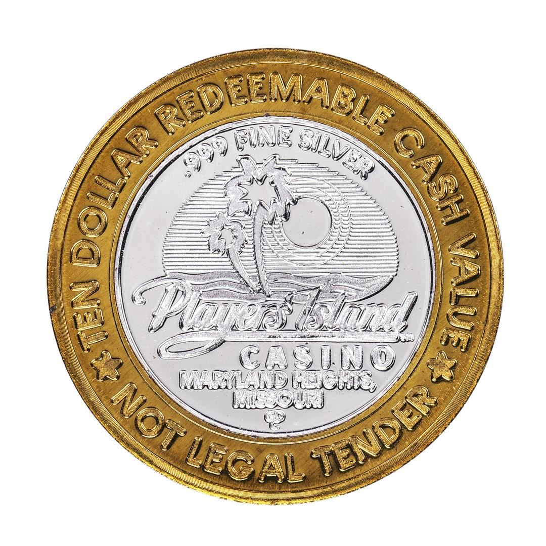 One .999 Silver Players Island Maryland Heights, MO $10 Limited Edition Casino Gaming Token.