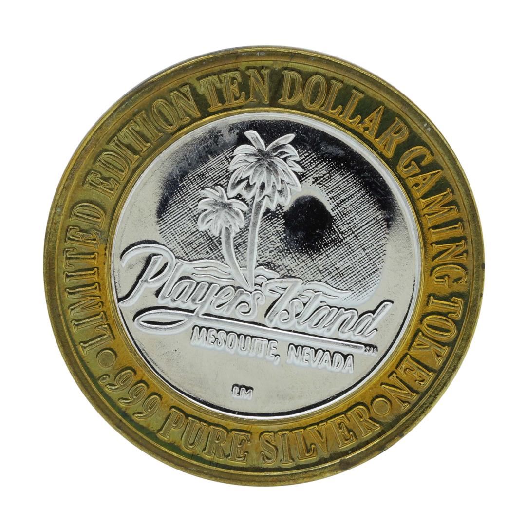 One .999 Silver Players Island Mesquite, Nevada $10 Limited Edition Casino Gaming Token.