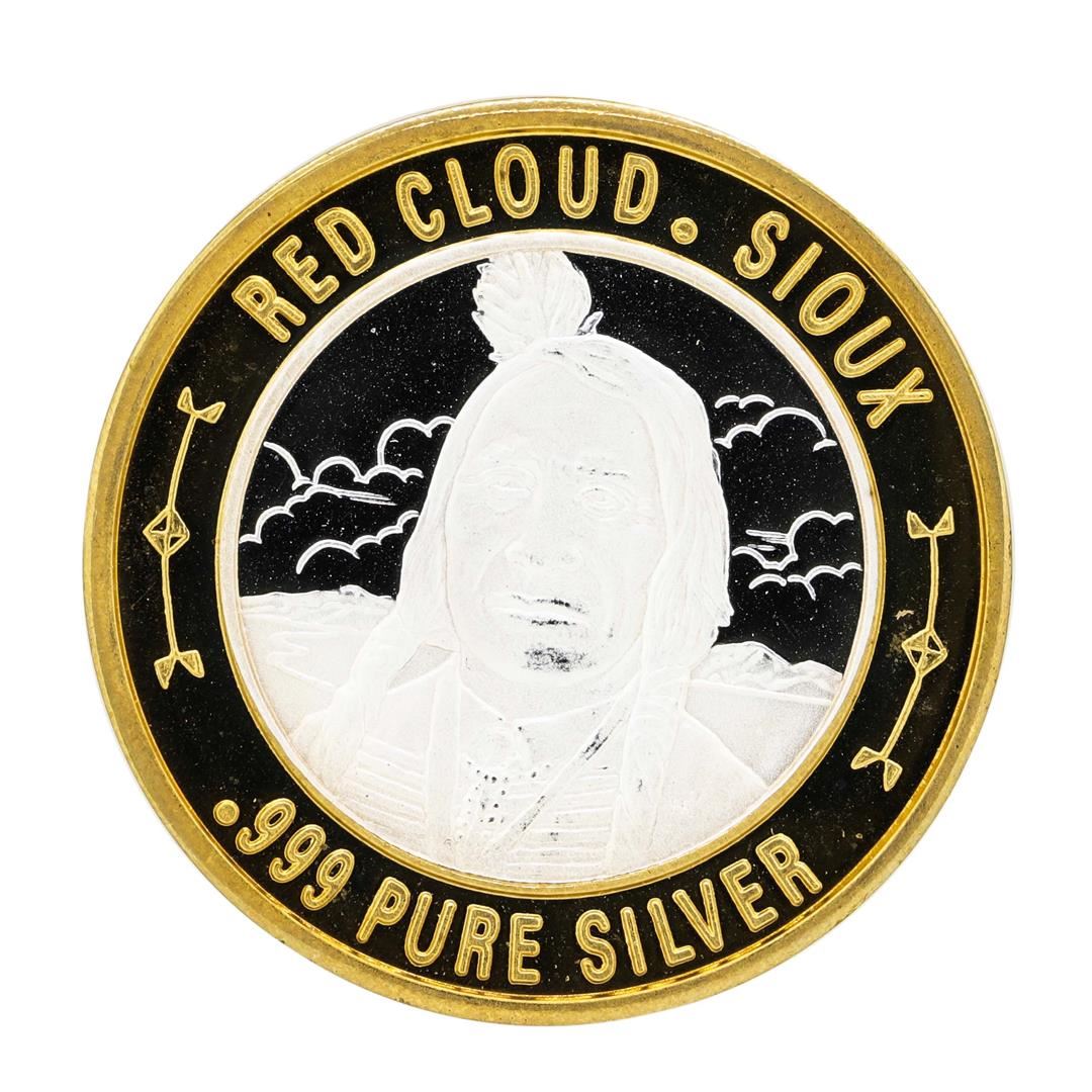 One .999 Silver Red Cloud Sioux $10 Casino Limited Native American Series Gaming Token.