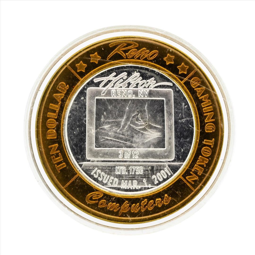 One .999 Silver Reno Hilton $10 Casino Gaming Token Limited Edition.