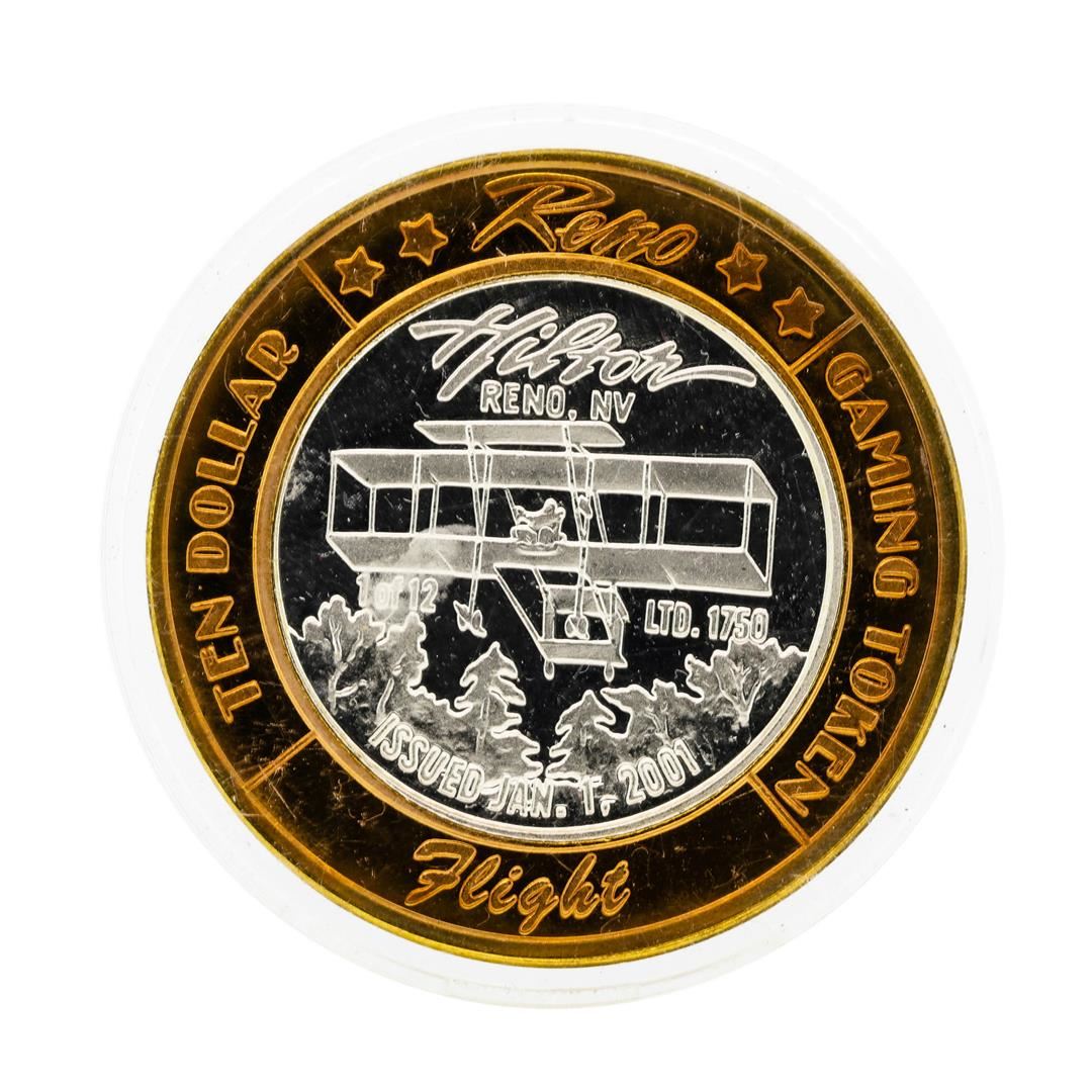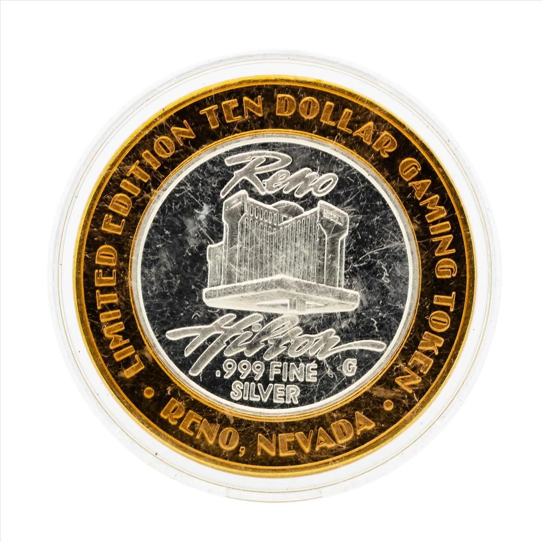 One .999 Silver Reno Hilton $10 Casino Gaming Token Limited Edition.