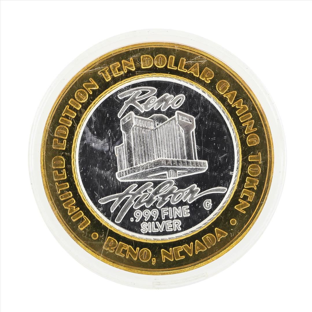 One .999 Silver Reno Hilton $10 Casino Gaming Token Limited Edition.