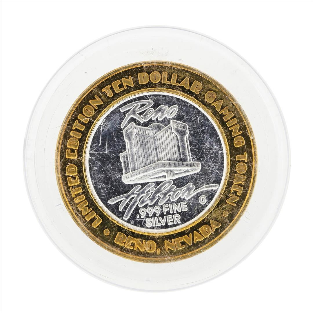 One .999 Silver Reno Hilton $10 Casino Gaming Token Limited Edition.