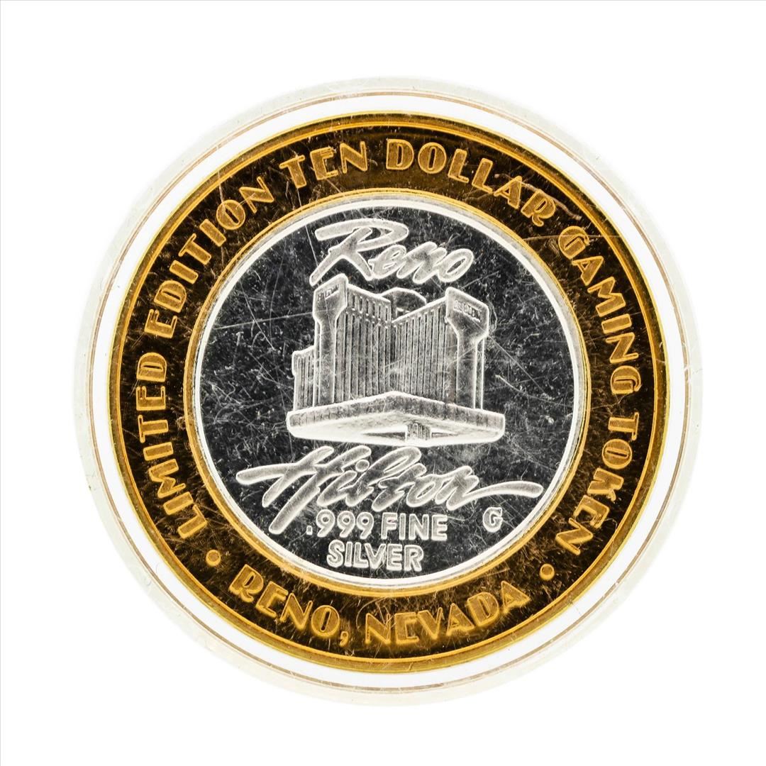 One .999 Silver Reno Hilton $10 Casino Gaming Token Limited Edition.