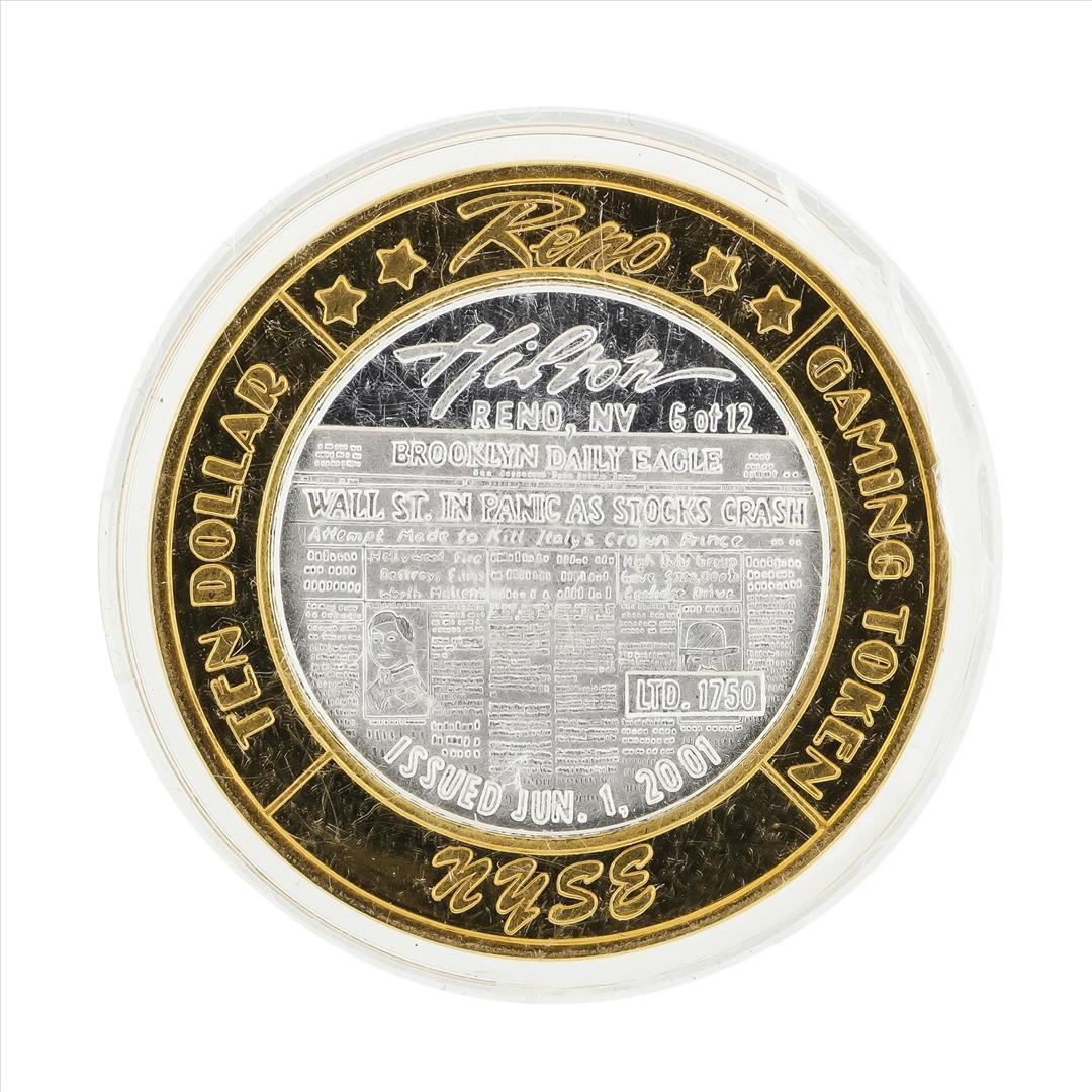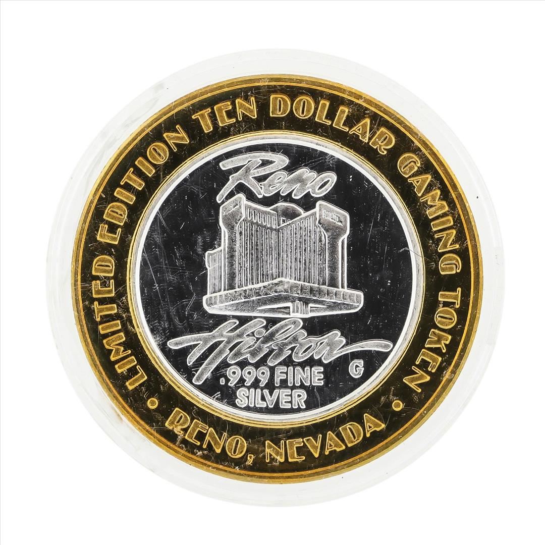 One .999 Silver Reno Hilton $10 Casino Gaming Token Limited Edition.