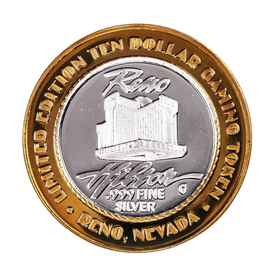One .999 Silver Reno Hilton Nevada $10 Casino Limited Edition Gaming Token.
