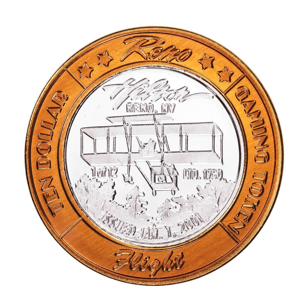 One .999 Silver Reno Hilton Nevada $10 Casino Limited Edition Gaming Token.