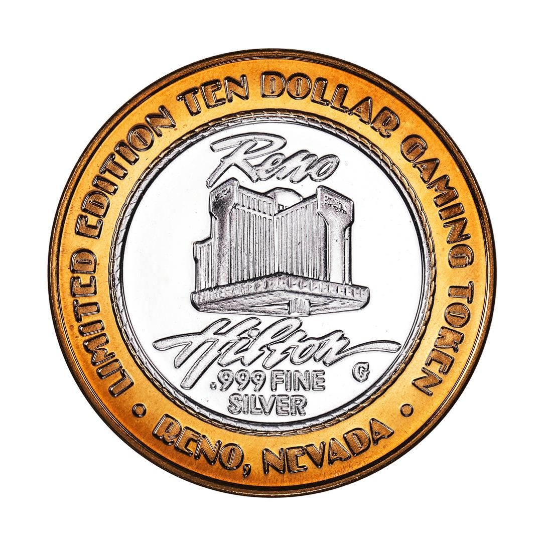 One .999 Silver Reno Hilton Nevada $10 Casino Limited Edition Gaming Token.