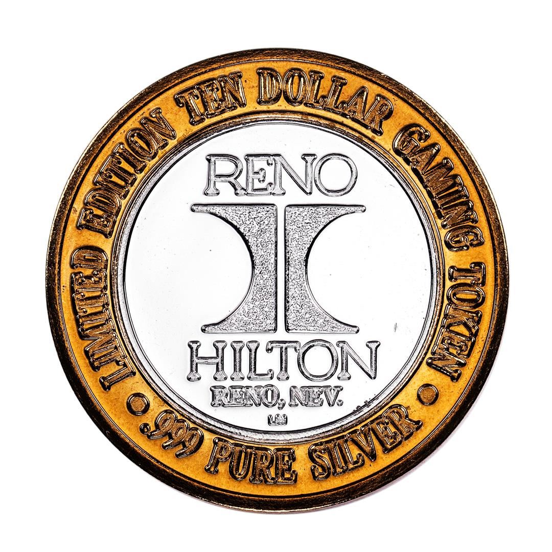 One .999 Silver Reno Hilton Nevada $10 Casino Limited Edition Gaming Token.