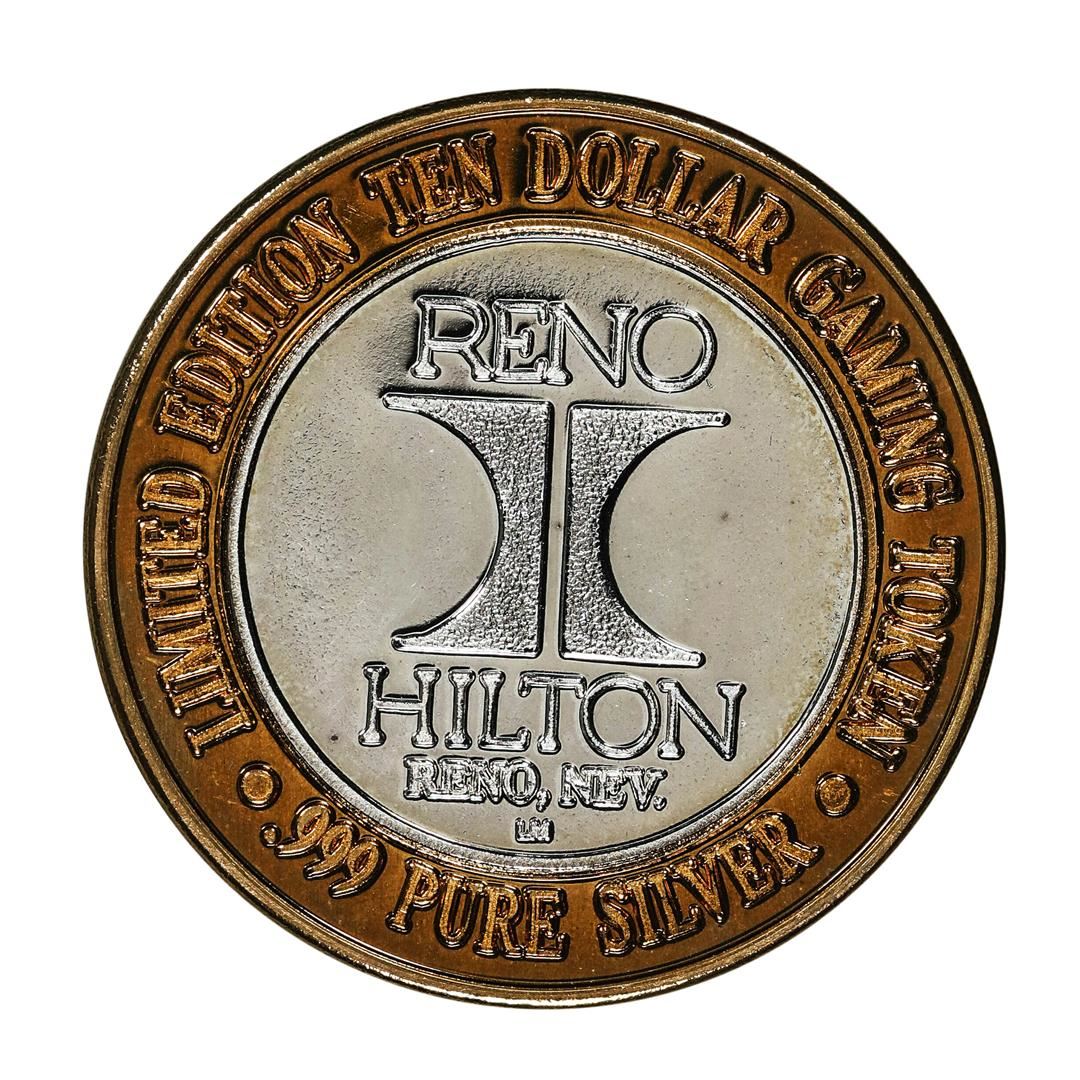 One .999 Silver Reno Hilton Nevada $10 Casino Limited Edition Gaming Token.