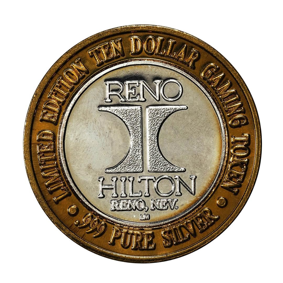 One .999 Silver Reno Hilton Nevada $10 Casino Limited Edition Gaming Token.