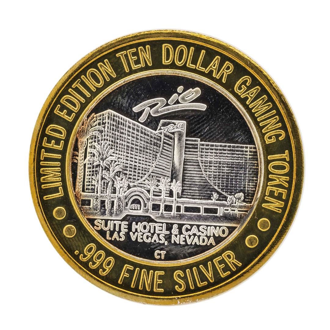 One .999 Silver Rio Suite Hotel & Casino $10 Casino Limited Edition Gaming Token.