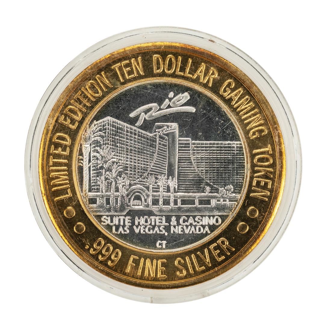 One .999 Silver Rio Suite Hotel & Casino Las Vegas $10 Limited Edition Gaming Token.