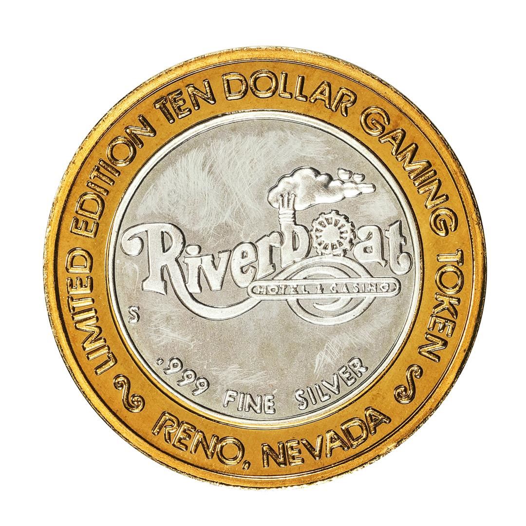 One .999 Silver Riverboat Reno, NV $10 Casino Limited Edition Gaming Token.