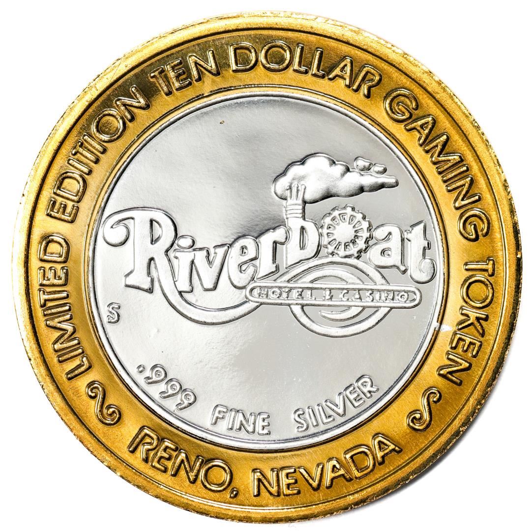 One .999 Silver Riverboat Reno, NV $10 Casino Limited Edition Gaming Token.