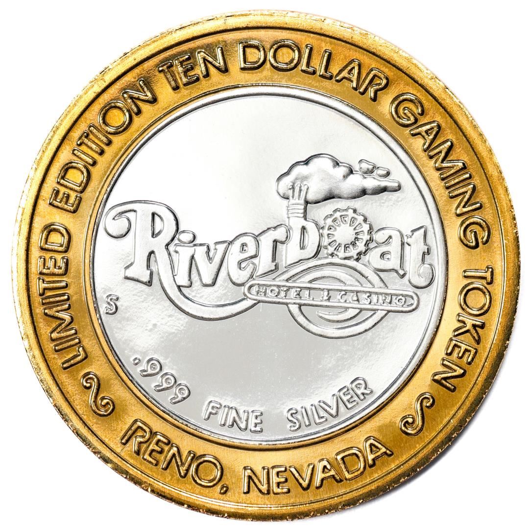 One .999 Silver Riverboat Reno, NV $10 Casino Limited Edition Gaming Token.