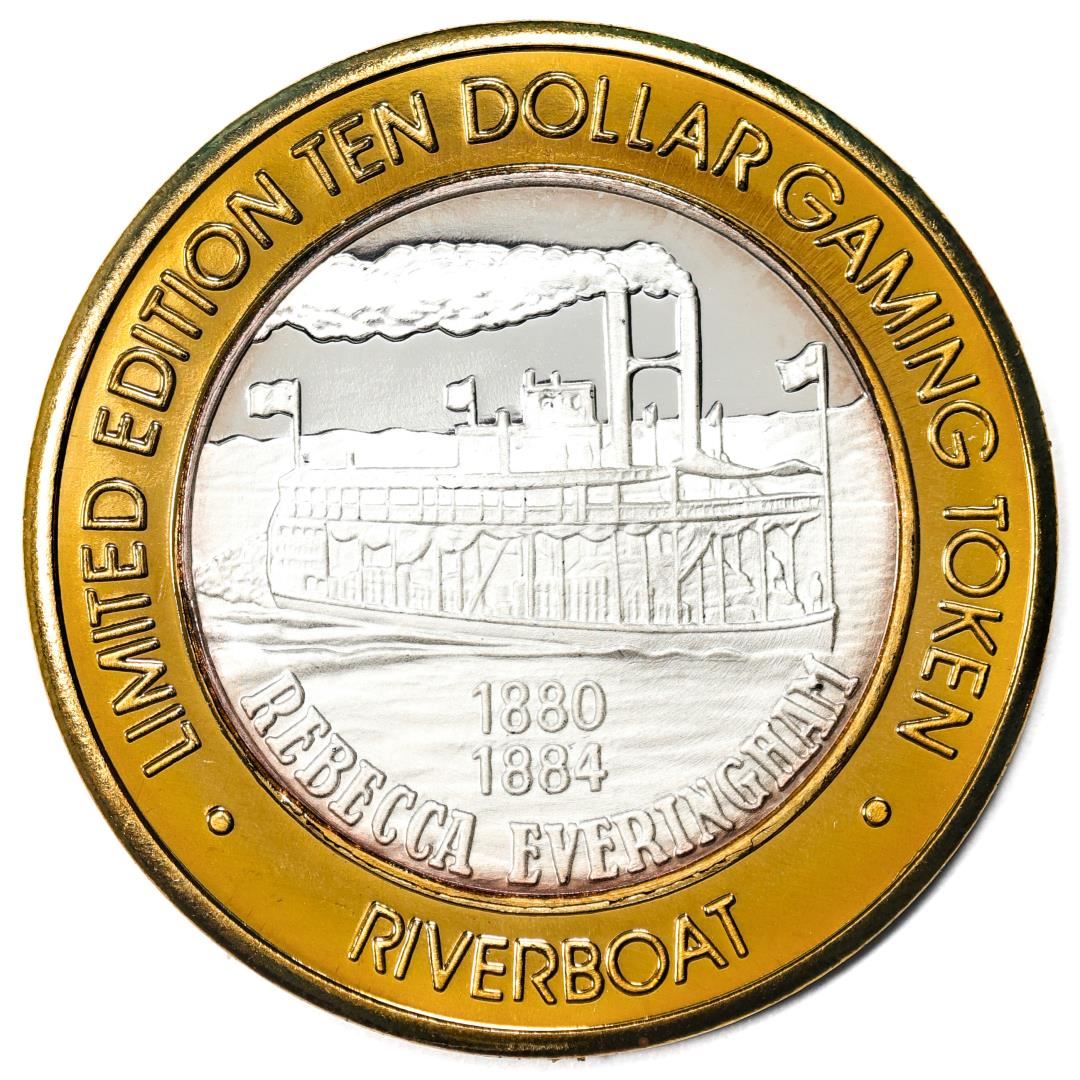 One .999 Silver Riverboat Reno, Nevada $10 Casino Limited Edition Gaming Token.