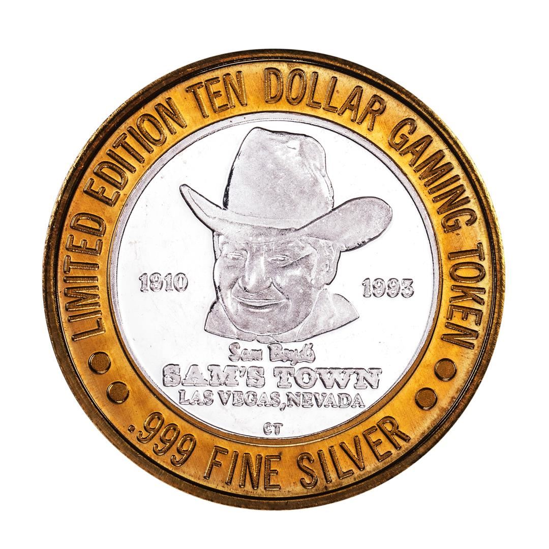 One .999 Silver Sam Boyd's Sam's Town Las Vegas $10 Casino Gaming Token Limited Edition.