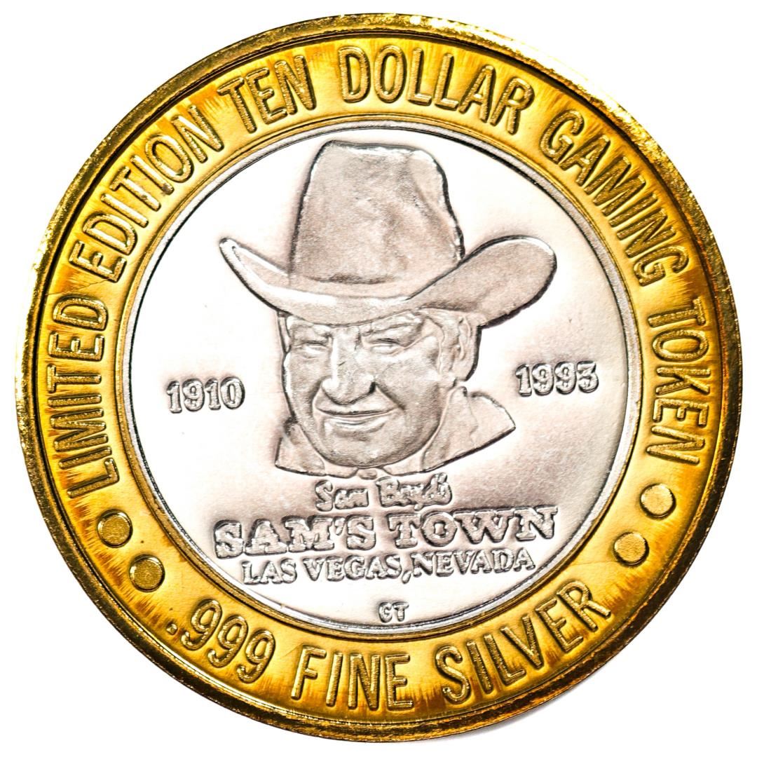 .999 Silver Sam Boyd's Sam's Town Las Vegas $10 Casino Gaming Token Limited Edition