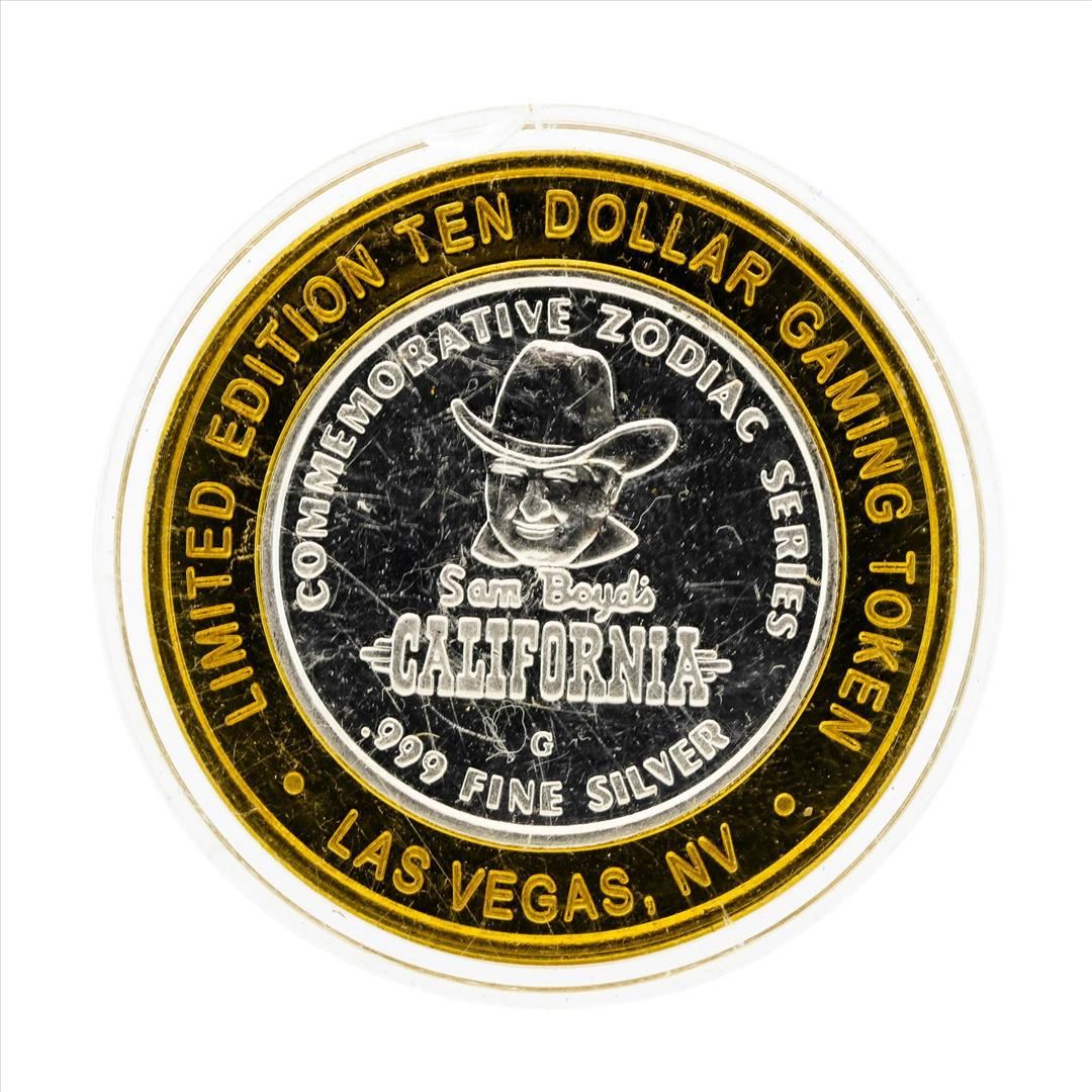 One .999 Silver Sam Boyds California $10 Casino Gaming Token Limited Edition.