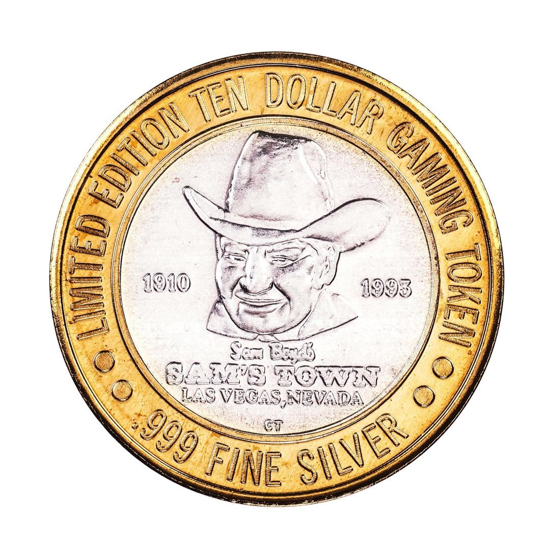 One .999 Silver Sam's Town Las Vegas, NV $10 Casino Limited Edition Gaming Token.