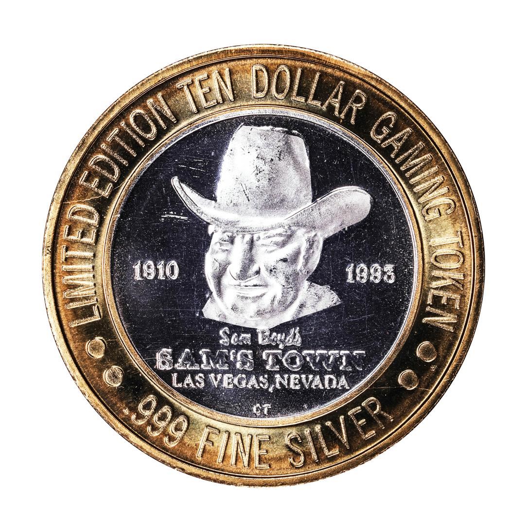 One .999 Silver Sam's Town Las Vegas Nevada $10 Casino Limited Edition Gaming Token.
