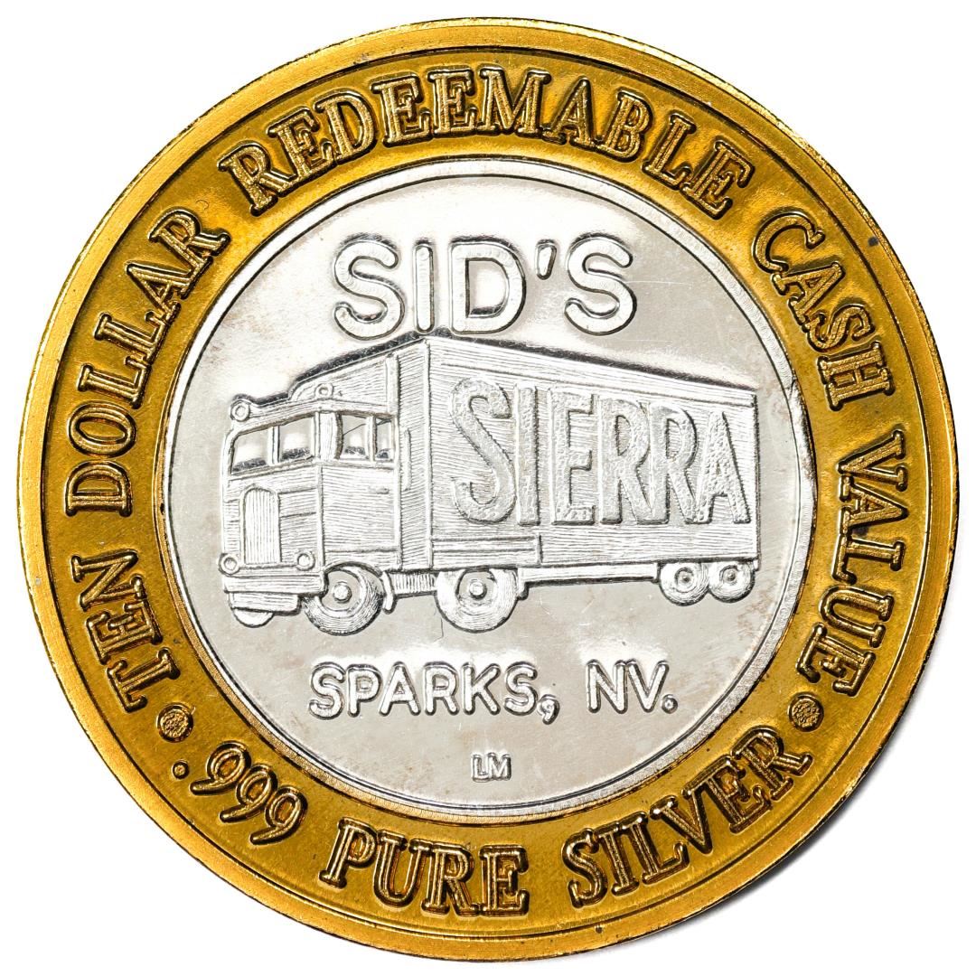 One .999 Silver Sierra Sids Sparks, Nevada $10 Casino Limited Edition Gaming Token.