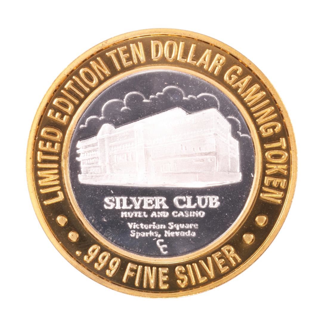 One .999 Silver Silver Club Casino Sparks, NV $10 Limited Edition Casino Gaming Token.