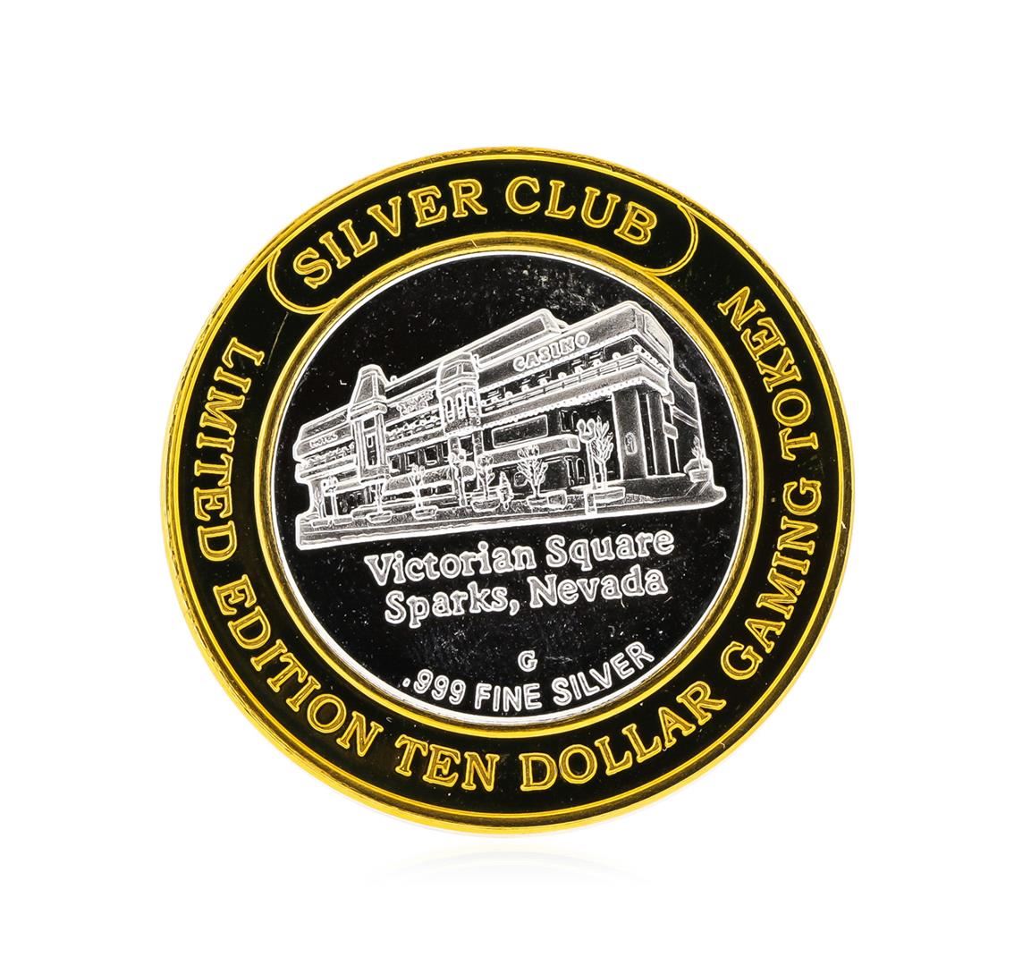 One .999 Silver Silver Club Victoria Square Sparks, NV $10 Casino Token Limited Edition.
