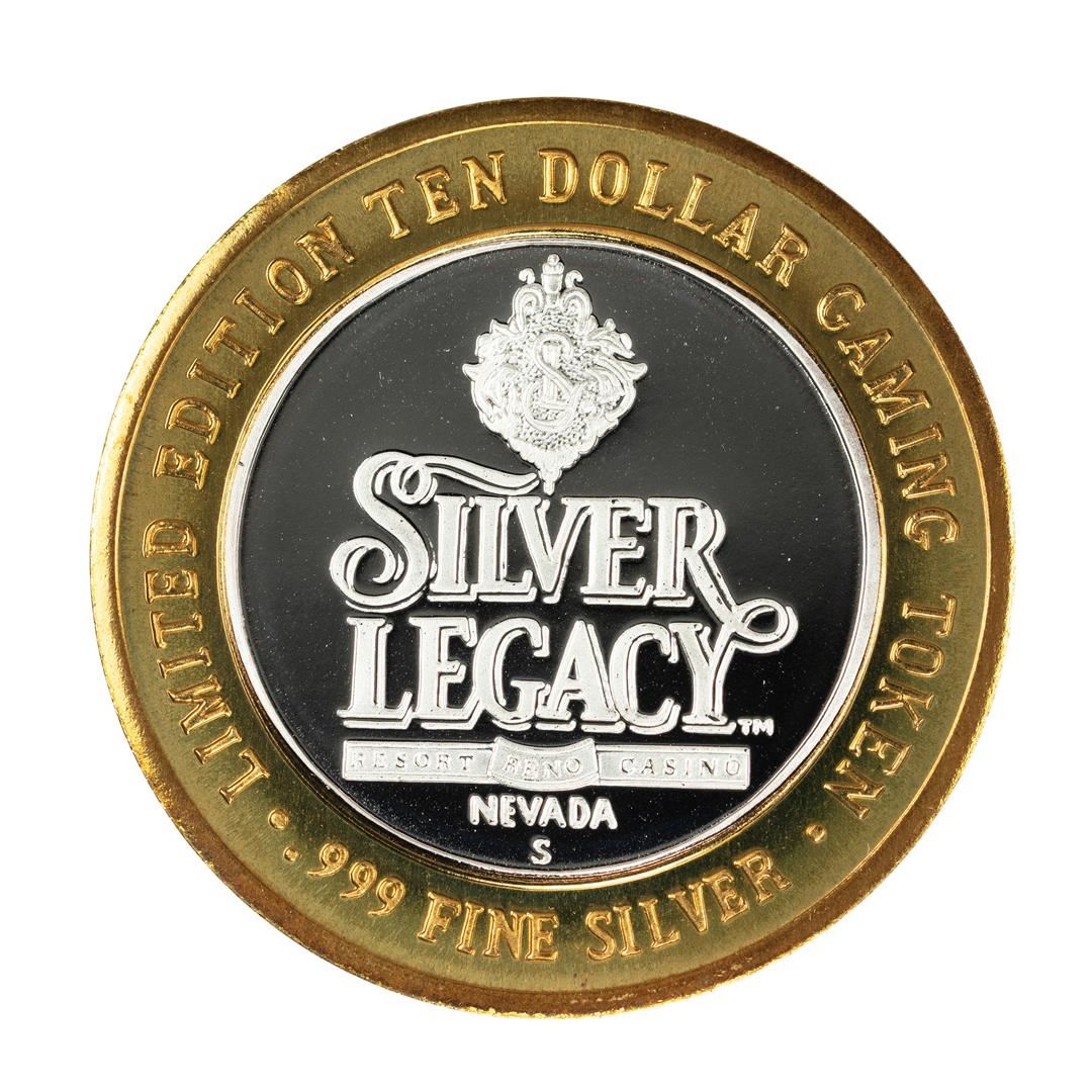 One .999 Silver Silver Legacy Reno, Nevada $10 Casino Limited Edition Gaming Token.