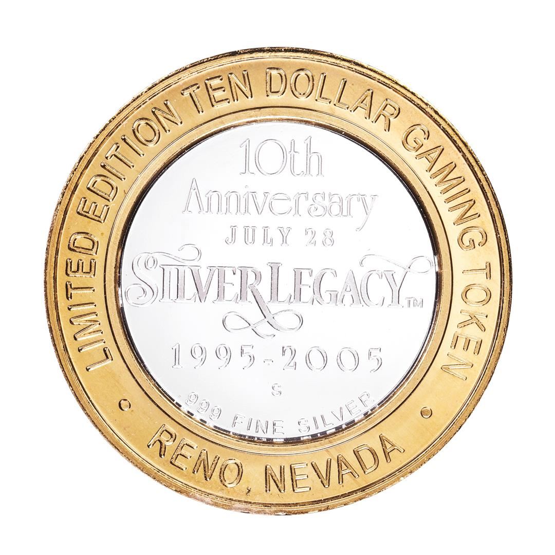 One .999 Silver Silver Legacy Reno, Nevada $10 Casino Limited Edition Gaming Token.