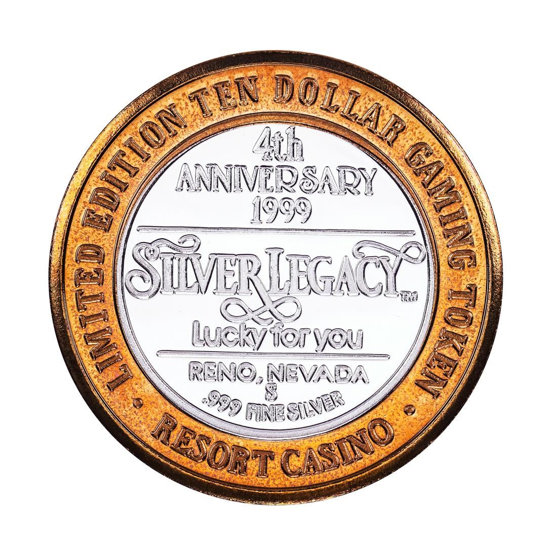 One .999 Silver Silver Legacy Reno, Nevada $10 Casino Limited Edition Gaming Token.