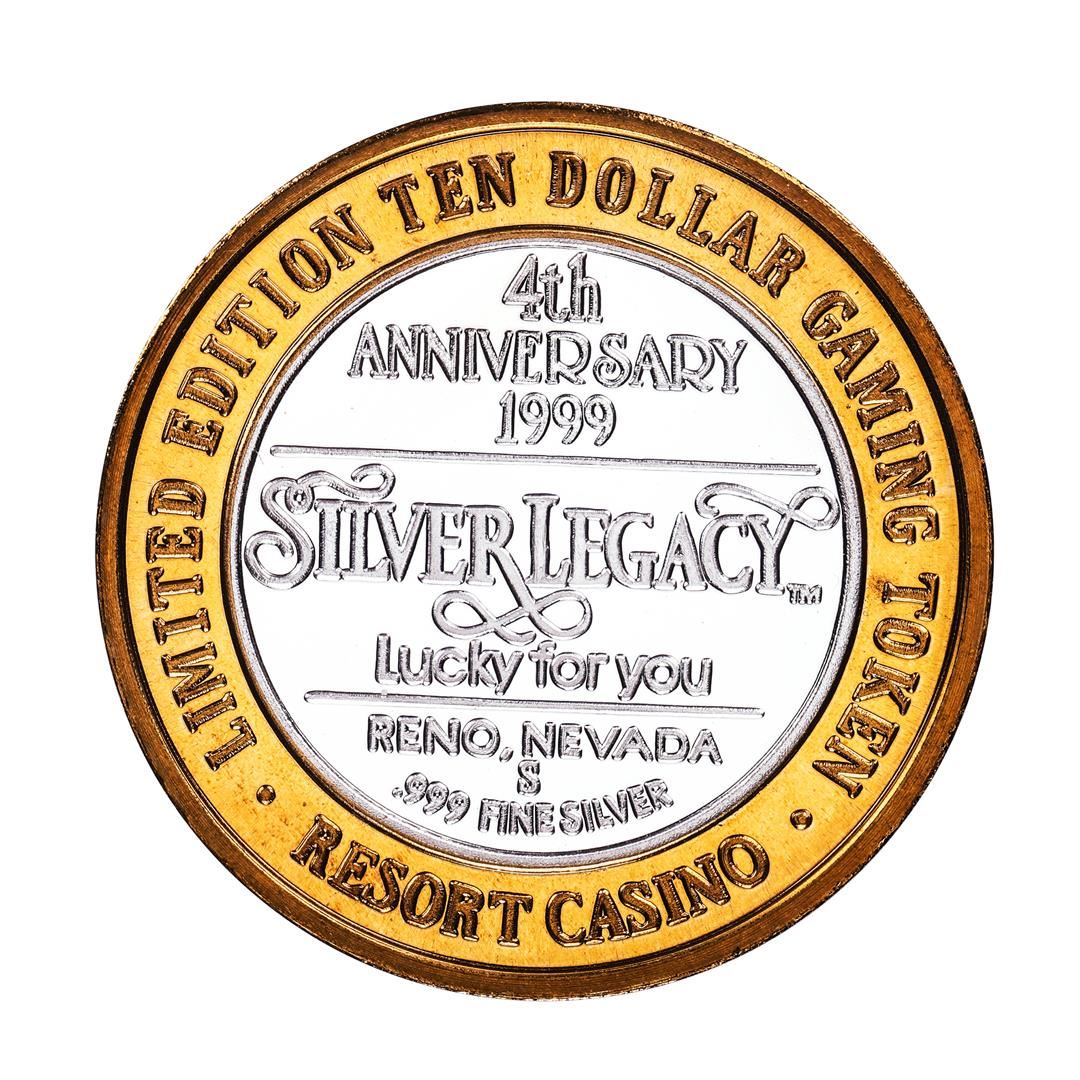 One .999 Silver Silver Legacy Reno, Nevada $10 Casino Limited Edition Gaming Token.