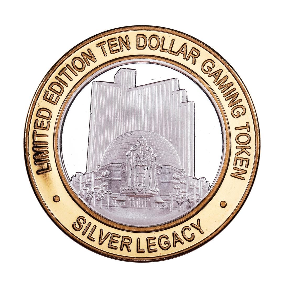 One .999 Silver Silver Legacy Reno, Nevada $10 Casino Limited Edition Gaming Token.
