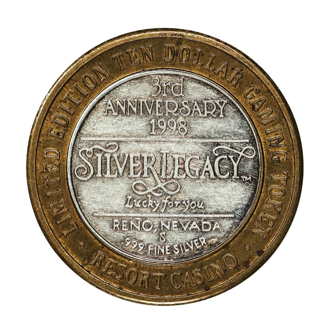 One .999 Silver Silver Legacy Reno, Nevada $10 Casino Limited Edition Gaming Token.