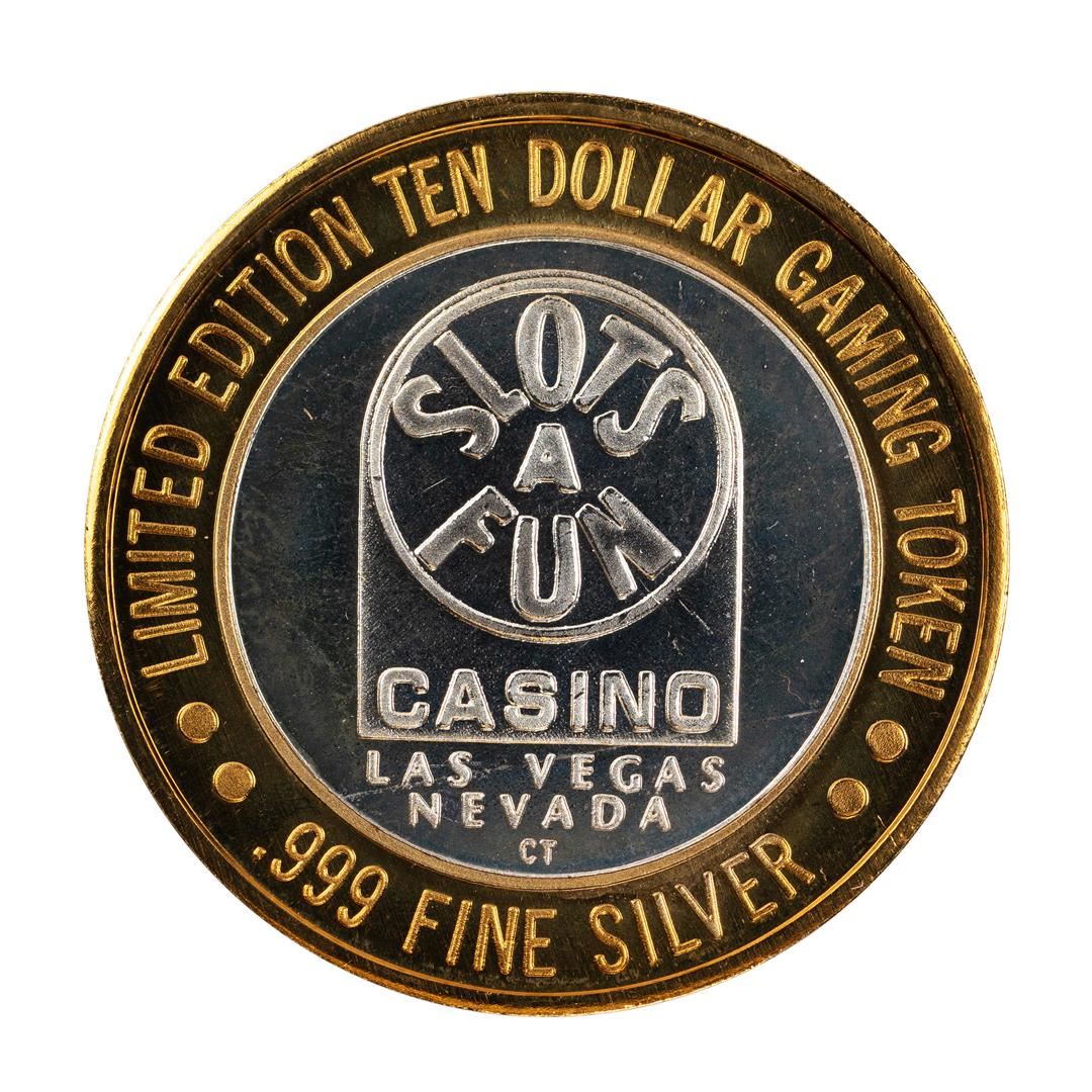 One .999 Silver Slots A Fun Casino Las Vegas, NV $10 Limited Edition Casino Gaming Token.
