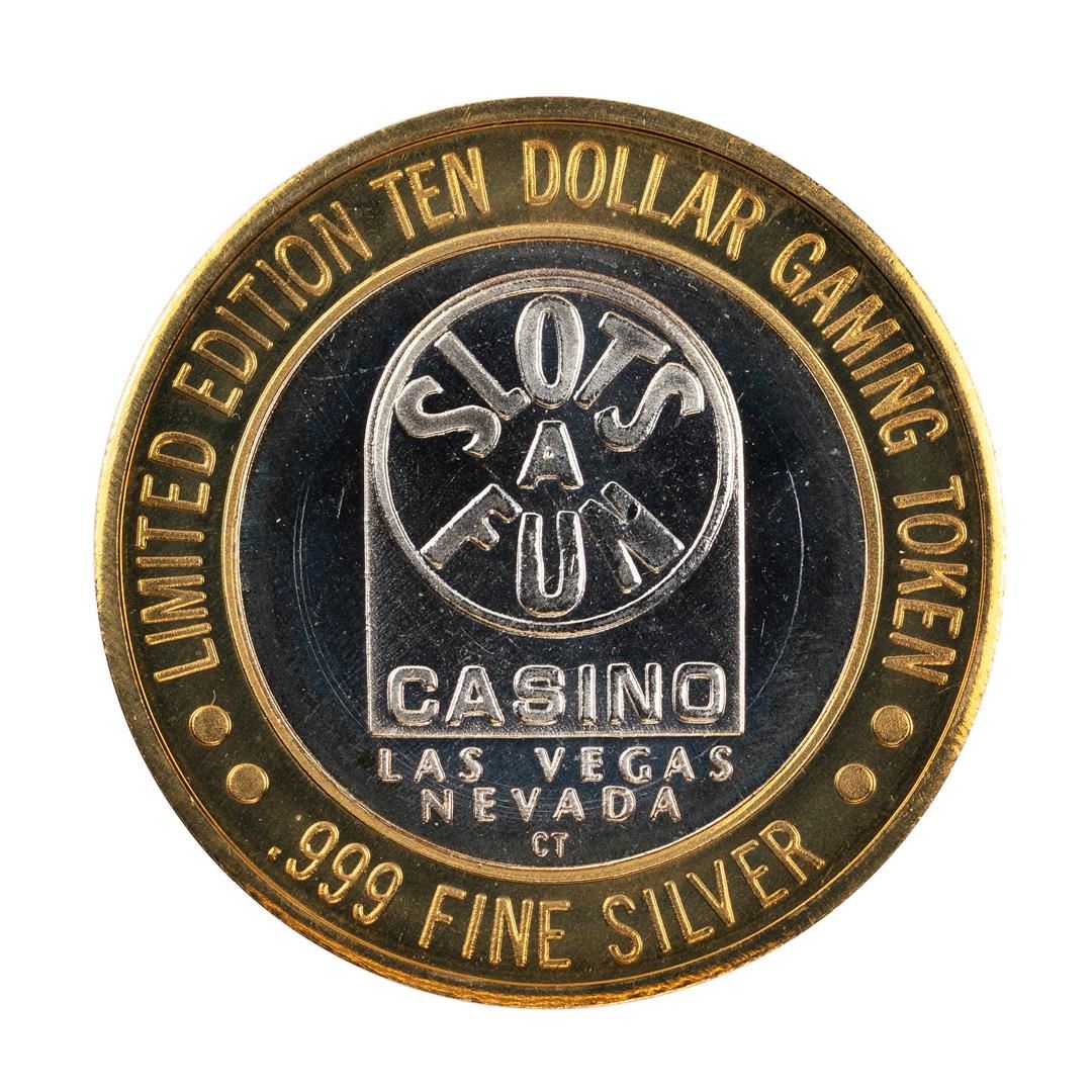 One .999 Silver Slots A Fun Casino Las Vegas, NV $10 Limited Edition Casino Gaming Token.