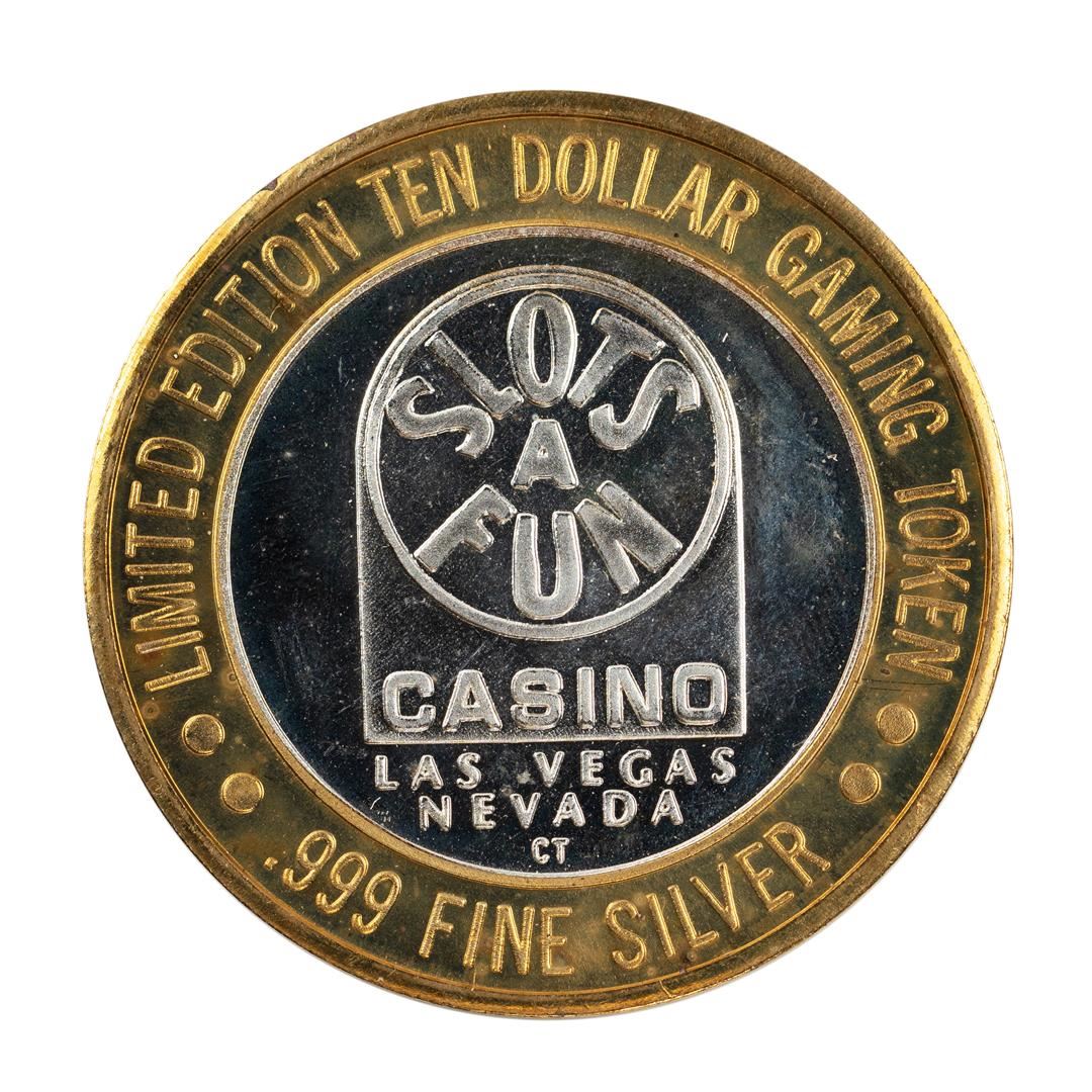 One .999 Silver Slots A Fun Casino Las Vegas, NV $10 Limited Edition Casino Gaming Token.