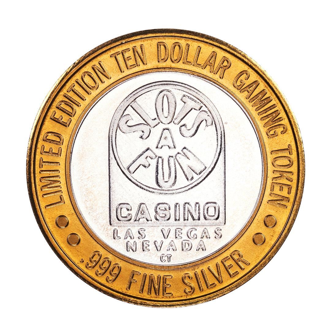 One .999 Silver Slots A Fun Casino Las Vegas, NV $10 Limited Edition Casino Gaming Token.