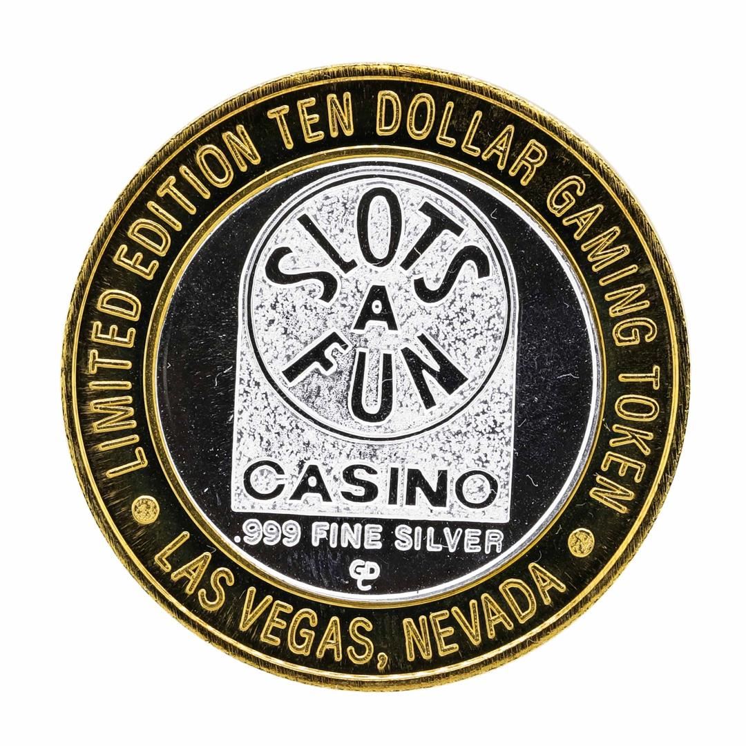One .999 Silver Slots - A - Fun Las Vegas, Nevada $10 Casino Gaming Token Limited Edition.
