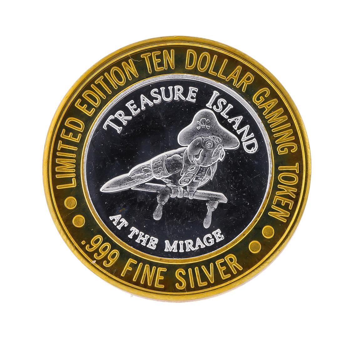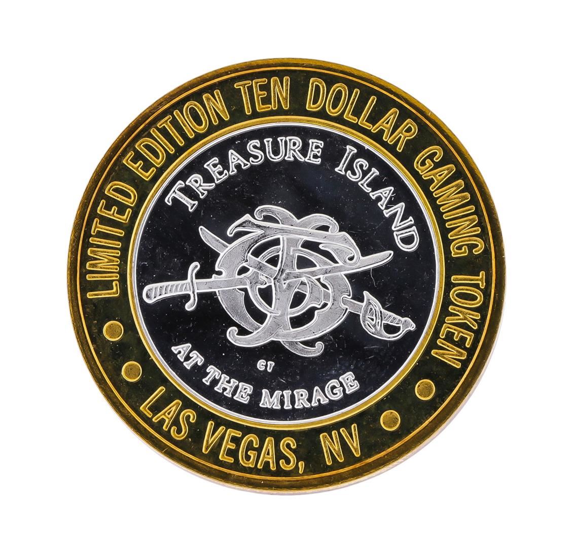 One .999 Silver Treasure Island Las Vegas $10 Casino Gaming Token Limited Edition.