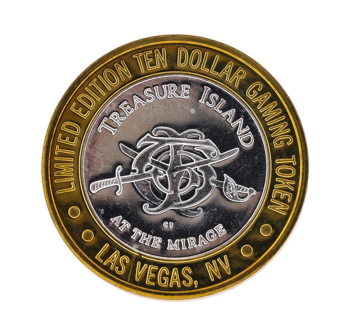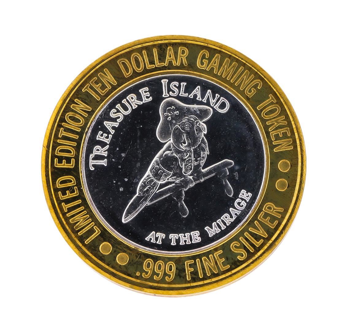 One .999 Silver Treasure Island Las Vegas $10 Casino Gaming Token Limited Edition.