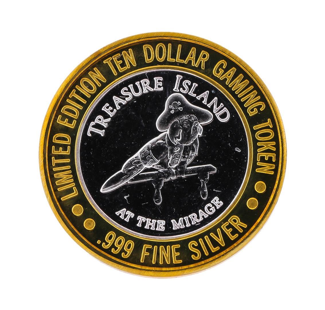 One .999 Silver Treasure Island Las Vegas $10 Casino Gaming Token Limited Edition.
