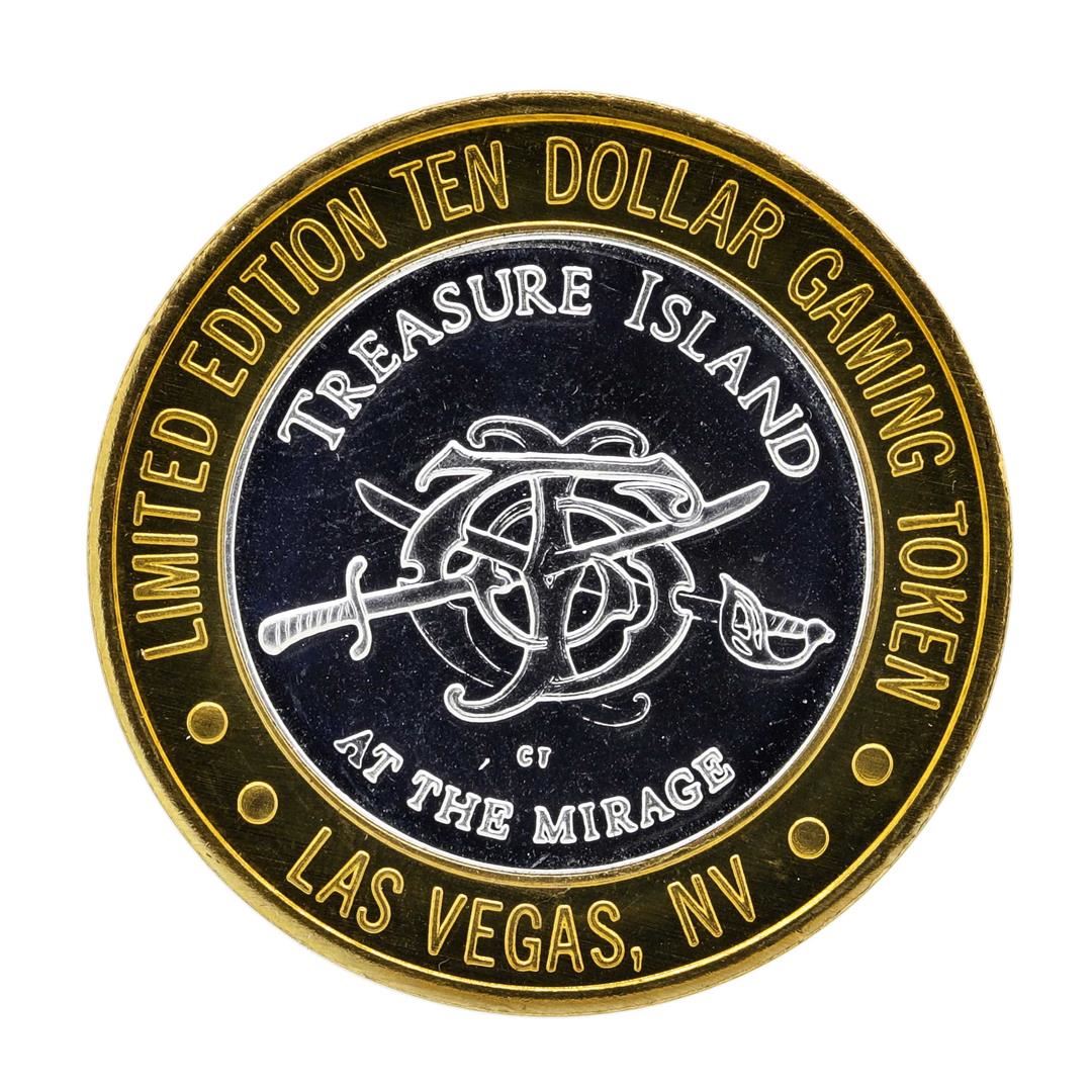 One .999 Silver Treasure Island Las Vegas $10 Casino Gaming Token Limited Edition.