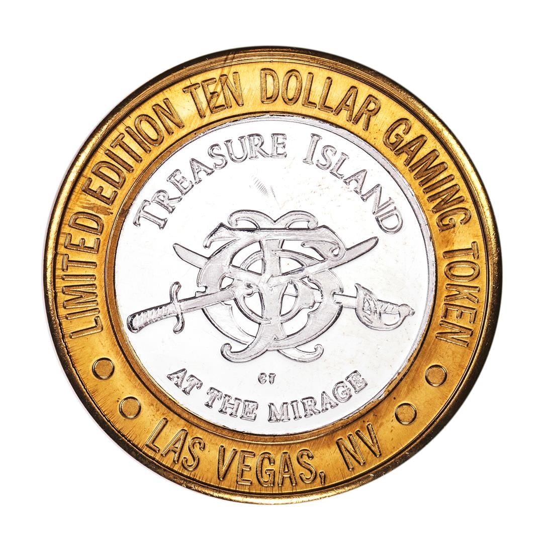 One .999 Silver Treasure Island Las Vegas $10 Casino Gaming Token Limited Edition.