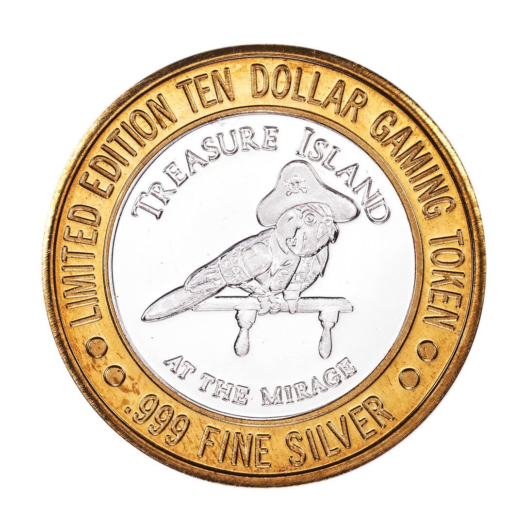 .999 Silver Treasure Island Las Vegas $10 Casino Gaming Token Limited Edition